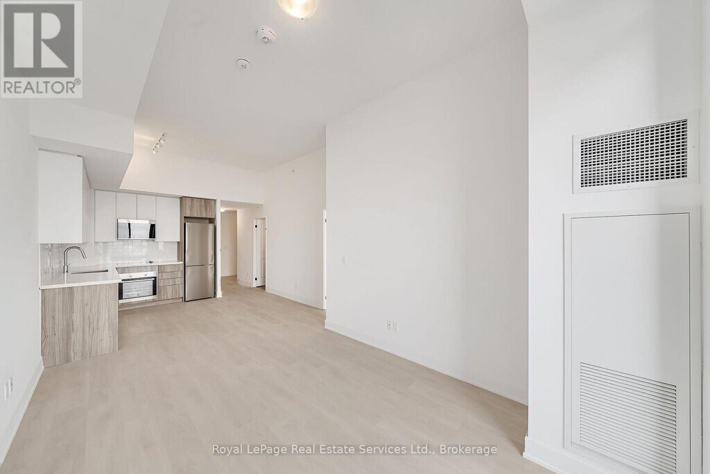 Spacious 1 Bedroom + Den condo with 2 Baths. Loft inspired 11' ceilings and open concept layout with sunny western exposure. Deluxe Kitchen has built-in Stainless Steel Appliances and Quartz Counters. Primary Bedroom with 3 pce Ensuite Bath and walk-in Closet. Large separate Den or Home Office with sliding Barn Door for privacy. Ensuite Laundry. Luxury vinyl flooring and custom blinds throughout. Oversized Locker adjacent to unit. Appx 750 sq ft + Balcony. Parking included. Incredible amenities including rooftop Pool and Sun Deck,Gyms,Club Rooms,Theatre,Kidzone and 24 hour Concierge. Great location- just steps away from shopping,restaurants,Oakville Transit hub and GO Bus. New Hospital,Sheridan College & GO Train Nearby. (id:52069) ID#: 1389452