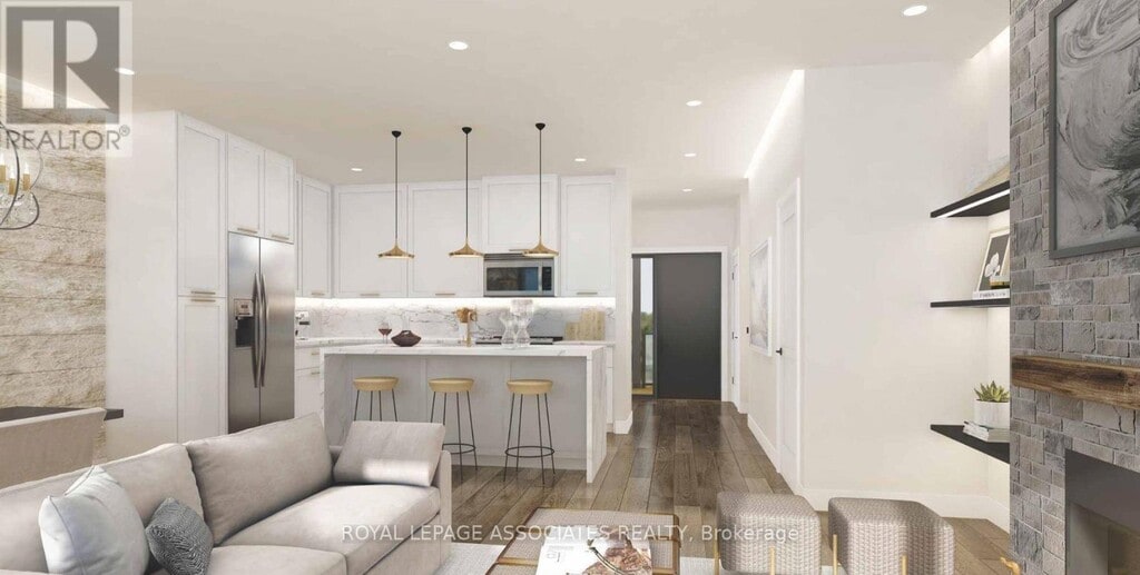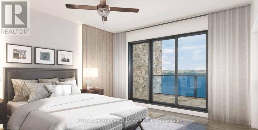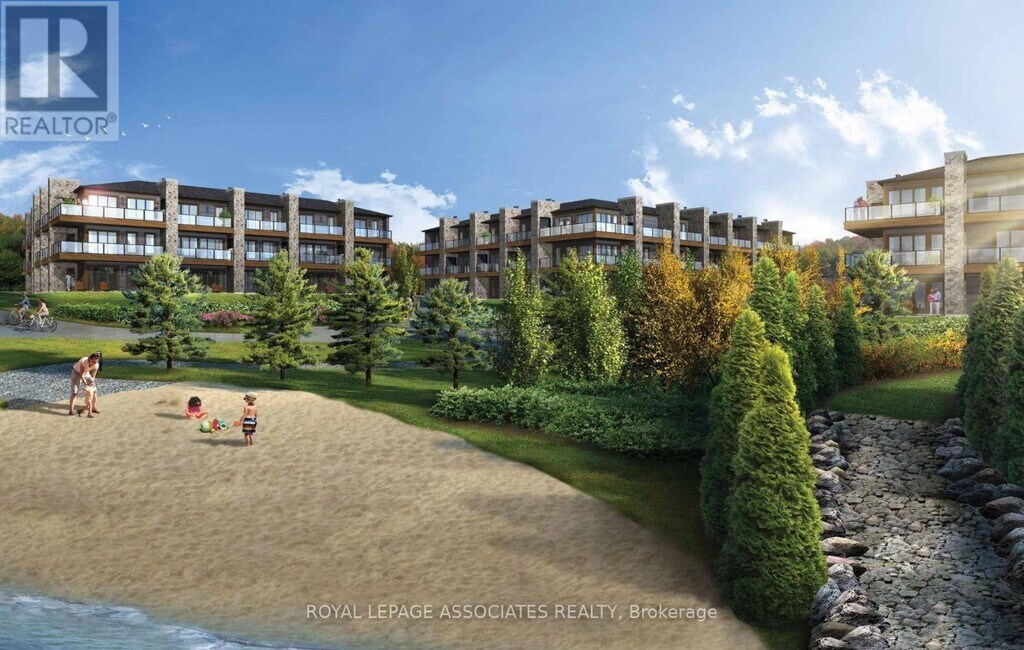 Welcome to Huntsvilles newest waterfront condo! This stunning 2-bedroom,2.5-bathroom condo offers the perfect blend of luxury,comfort,and natural beauty in the heart of Huntsville,Ontario. Set along the tranquil shores of Fairy Lake,this modern residence features floor-to-ceiling glass that frames panoramic views of the lake and surrounding forested landscape,flooding the space with natural light year-round. Enjoy seamless indoor-outdoor living with a private balcony accented by sleek glass railings,perfect for morning coffees or sunset unwinding. The open-concept living space is anchored by a contemporary fireplace,adding warmth and sophistication to your lakeside retreat.The kitchen and bathrooms boast of high-end finishes,complementing the condos clean,modern design. Residents enjoy access to a state-of-the-art fitness centre and private beach. The buildings location offers unbeatable convenience just off of Highway 60,minutes from downtown Huntsville,close to golf courses and the natural wonders of Algonquin and Arrowhead Provincial Parks. (id:52069) ID#: 1967481