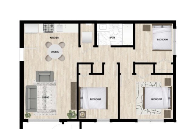 8 - Floorplan 1 Apartment Unit: 102Apartment Model: 8$2,6003 Bedroom, 1 Bath, 850 sq ftAvailable Now