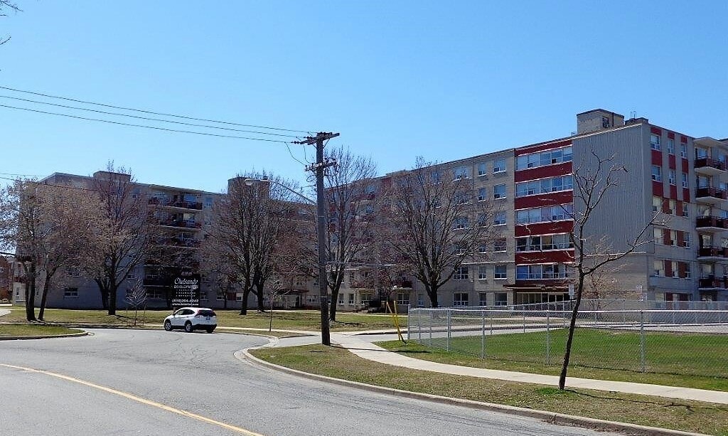 Located on a quiet street, these three rental buildings surround a green space lined with trees. The property is close to the Eglinton GO commuter station and the Kennedy subway station. There are also bus shelters for two main 24-hour bus routes 16, 86, 116, 302, and 334 that are within a few minutes walk. Five shopping areas are nearby, including 3 grocery stores (Metro, Loblaws and the real Canadian Super Store). This property has four public schools within walking distance. There is exterior parking on the property as well as public transit within a block of the building. Water not included, heat is included in the rental price.