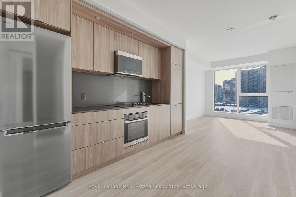 Welcome to Westerly 1 at 25 Cordova Avenue,a brand-new condominium offering modern,efficient living in the heart of Islington-City Centre West. This thoughtfully designed 1-bedroom plus den suite spans approximately 614 sq. ft. and features a bright,carpet-free interior with a functional open layout. The contemporary kitchen is finished with built-in stainless steel appliances and sleek cabinetry,seamlessly connecting to the combined living and dining area. Floor-to-ceiling windows bring in abundant natural light,creating a comfortable and inviting main living space. The bedroom offers a well-proportioned layout with a full closet and large window,while the open den provides flexible use as a home office or study. A modern 4-piece bathroom with clean finishes and in-suite laundry tucked into a dedicated closet complete the interior. One parking space is included,adding everyday convenience. Residents enjoy access to amenities including a fitness centre,party and meeting rooms,guest suites,and concierge service. Conveniently located near Islington Station,parks,schools,and everyday amenities,this suite delivers well-connected urban living in a desirable Etobicoke neighbourhood. (id:63800) ID#: 1968379
