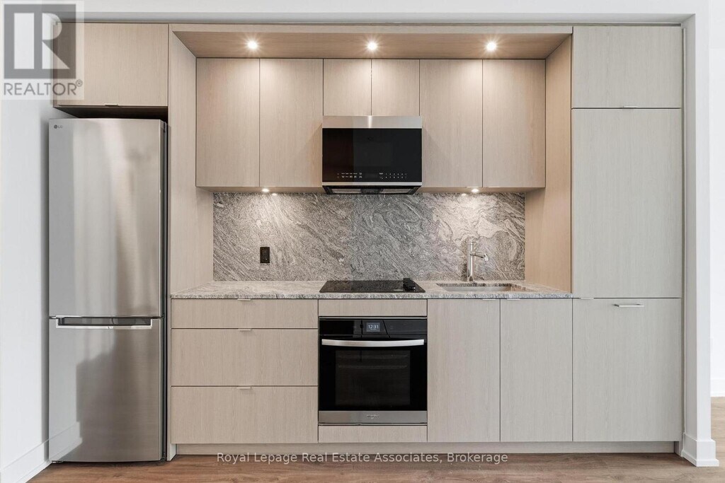 Welcome to Westerly 1 at 25 Cordova Avenue,where contemporary design meets everyday convenience in the heart of Islington-City Centre West. This brand-new 1-bedroom plus den suite offers approximately 614 sq. ft. of thoughtfully designed interior space,featuring a bright,carpet-free layout and modern finishes throughout. The sleek kitchen is equipped with built-in stainless steel appliances and contemporary cabinetry,flowing seamlessly into the combined living and dining area. Floor-to-ceiling windows enhance natural light and create an open,inviting atmosphere ideal for both daily living and entertaining. The bedroom features a floor-to-ceiling window and closet,while the enclosed den provides flexible space well suited for a home office or study. A modern 4-piece bathroom is finished with clean tilework and a streamlined vanity. In-suite laundry is conveniently located in a dedicated closet. One exclusive underground parking space and an exclusive locker are included. Residents enjoy access to premium amenities including a fitness centre,business centre,guest suites,party and meeting rooms,and concierge service. Ideally situated steps from Islington Station,parks,schools,and everyday conveniences,this suite offers comfortable,well-connected urban living in a highly desirable Etobicoke community. (id:63800) ID#: 1968379