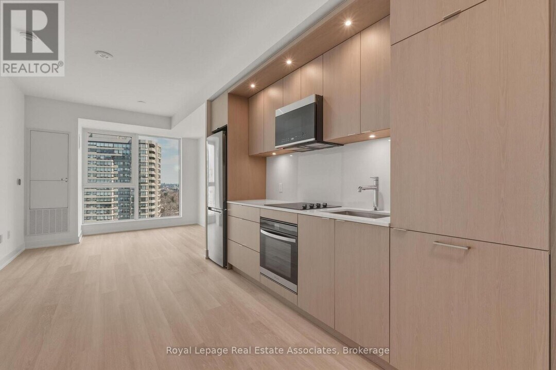***UNOBSTRUCTED GOLF COURSE VIEWS +LARGE FUNCTIONAL DEN*** Contemporary bright 1-bedroom + den in the heart of Islington-City Center West with stunning,unobstructed golf course views from two large windows,bringing in abundant natural light. Modern kitchen with built-in stainless steel appliances flows into open-concept living/dining.S pacious bedroom with large closet. Fully enclosed den is large enough for a double bed,home office,or gym setup-ideal for flexible living.4-piece bath,in-suite laundry,and premium amenities including fitness centre,party and meeting rooms,concierge,and guest suites. Steps to Islington Subway Station,grocery stores,cafés,parks and everyday conveniences. (id:52069) ID#: 1968379