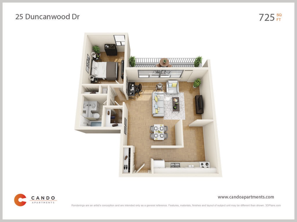 25 Duncanwoods Dr offers 1 to 2 Bedroom apartments starting from $1,999 and having 725–921 sq ft. Here is the current pricing and availability: