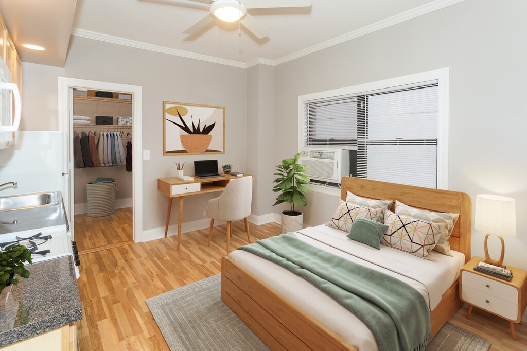 Studio to 2 Bedroom Apartments at 25 E. Delaware currently range from $1,365 to $2,845
