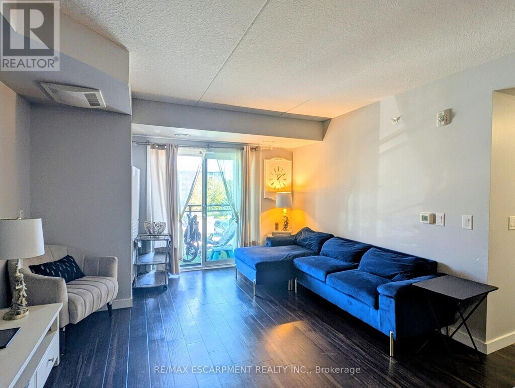 Welcome to one of the largest suites in the highly sought-after Clairity 2 Condos in South Guelph,built by award-winning developer Reids. This spacious and well-maintained 2-bedroom,2-bathroom suite offers 940 square feet of living space. Step into a bright,open-concept layout featuring durable vinyl plank flooring and a modern kitchen complete with quartz countertops,stainless steel appliances,and an oversized breakfast island - perfect for entertaining or casual dining. The living and dining area opens onto a private balcony with open views,creating a seamless indoor-outdoor experience. The primary bedroom includes a stylish 3-piece ensuite. A larger laundry room provides additional storage and convenience. This suite combines elegance and functionality in a vibrant,amenity-rich location. Situated close to Highway 6,grocery stores,schools,golf clubs,and all essential amenities,this condo offers the perfect blend of comfort,style,and accessibility - truly contemporary living at its finest. (id:52069) ID#: 1529018