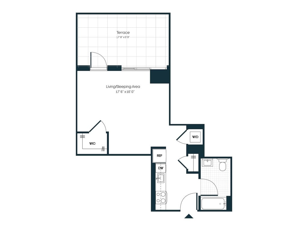 Studio, 1 Bath, 592 sq ftLargest StudioThis is the largest Studio at this PropertyModel Gallery