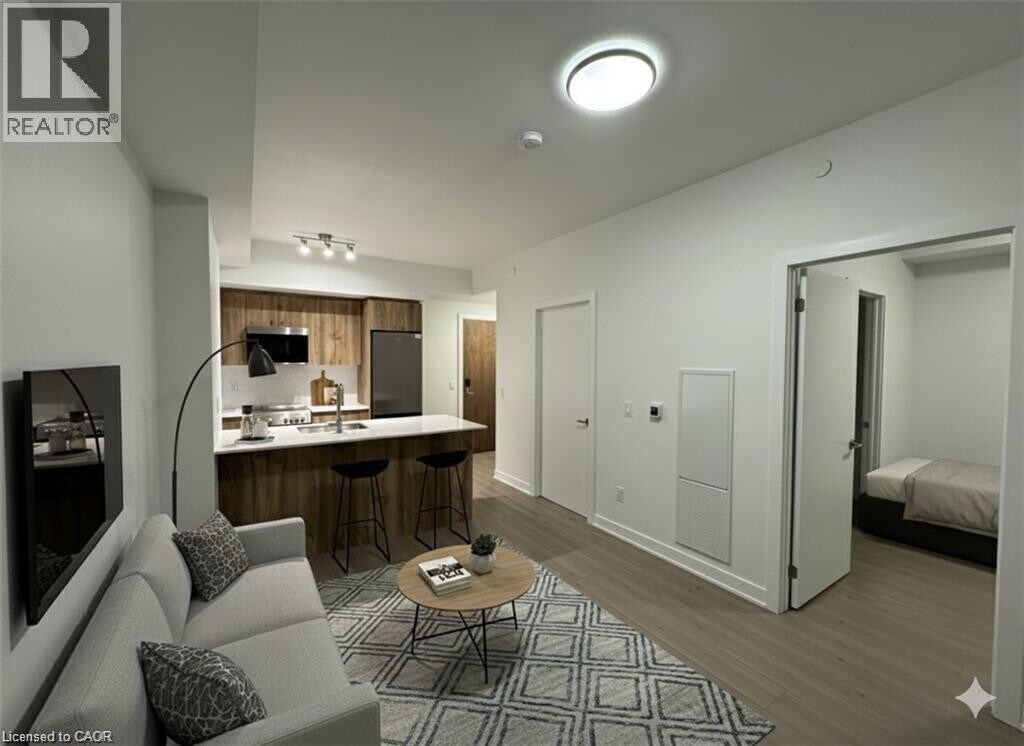 AVAILABLE IMMEDIATELY Modern 1-bedroom condo in Kitchener’s Duo. Offering 500 sq ft of interior living space plus a balcony,this unit combines style and functionality. The bright,open-concept layout features floor-to-ceiling windows,a sleek kitchen with stainless steel appliances,quartz countertops,tile backsplash,and ample storage. A bathroom showcases a quartz vanity and a soaker tub. Enjoy in-suite laundry,underground parking,a locker,and access to luxury amenities including a fitness and wellness centre,swim spa,bowling alleys,arcade,party lounge,dog park,amphitheatre,BBQs,work pods,and cabanas. Conveniently located near Google,Grand River Hospital,LRT,GO Station,shops,restaurants,and Victoria Park. The Photos have been virtually staged. (id:52069) ID#: 2173146