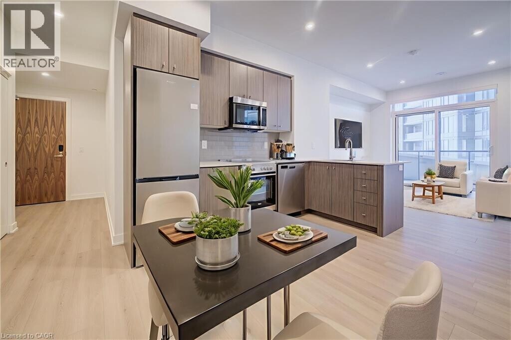 Modern 1 bedroom plus den condo in Duo Tower 3,the newest building at Station Park,located in downtown Kitchener’s Innovation District. Never lived in,the well-planned layout prioritizes everyday livability,with a functional den ideal for a home office,a bright open living space,and a generously sized north-facing balcony that comfortably extends the living area and enjoys morning sun. Contemporary kitchen with quartz counters and stainless steel appliances,in-suite laundry,window coverings including blackout blinds in the bedroom,high-speed internet,one underground parking space,and a private storage locker all included with rent. Residents enjoy access to Station Park’s extensive amenities including a full fitness centre with Peloton studio,swim spa and hot tub,sauna,bowling alley,games and lounge rooms,private dining and entertaining spaces,outdoor terraces with cabanas and BBQs,concierge,parcel lockers,and a pet spa. Steps to the LRT,GO Train,tech offices,shops,restaurants,and daily conveniences. Some photos virtually staged (id:52069) ID#: 2072050