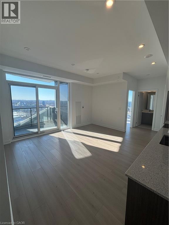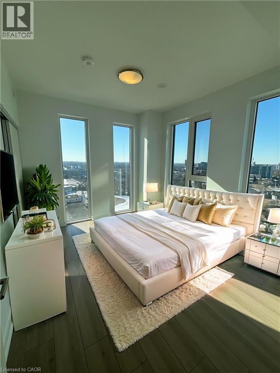 Welcome to this stunning 17th-floor corner unit at DUO Condos in the heart of Station Park,downtown Kitchener. This bright 1-bedroom suite features 9-foot ceilings and expansive floor-to-ceiling windows,filling the space with natural light and showcasing sweeping city views from your private balcony. The open-concept layout offers quartz countertops,sleek modern cabinetry,high-efficiency stainless steel appliances,a glass standing shower,and in-suite laundry. Residents enjoy 24-hour concierge service and access to premium amenities including a bowling alley,games lounge,swim spa,sauna,state-of-the-art fitness centre with Peloton studio,and an expansive outdoor terrace. Ideally located steps to the Innovation District,LRT,GO Transit,Victoria Park,shopping,dining,Grand River Hospital (WRHN),and major employers such as Google,D2L,and Communitech. Available immediately. (id:63800) ID#: 2191464