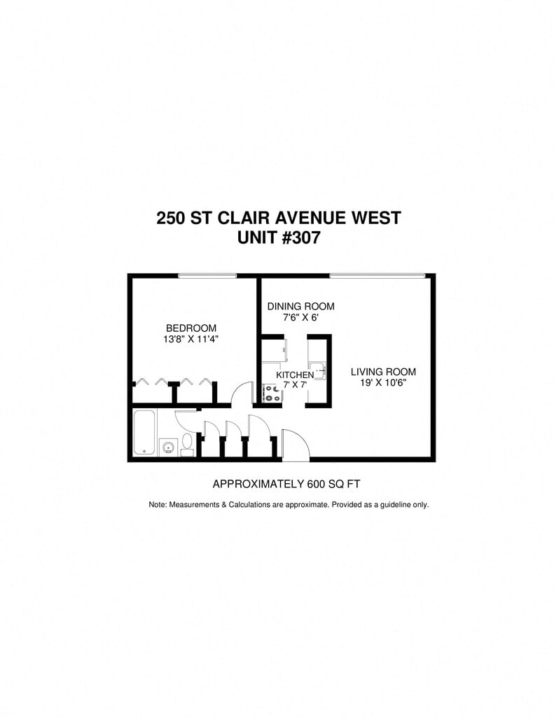 250 St Clair Ave. W. offers 1 Bedroom apartments starting from $2,050 and having 600 sq ft. Here is the current pricing and availability:
