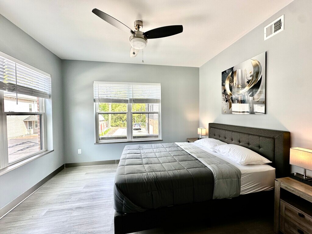 a brand new, modern, luxury 2b2b furnished unit (sleep up to 5 people with sofa bed converted), and only 10 minutes walking distance to the OSU campus. Please see the following amenities: 1) 2 queen beds with Casper Select 12" Memory Foam Mattress; 2), 65 Smart TV; 3), All-Clad copper core cookware set, utensils, Knife set, silverware and 16-Piece Bone China Dinnerware; 4), Keurig K-Cafe Serve Coffee Latte & Cappuccino Maker; 5), Stainless Steel Applications; 6), Roof top; 7), Elevator; 8), private balcony; 9), short term lease available;