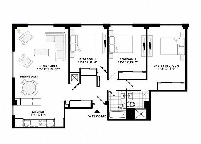 Studio Basic A - Floorplan 2 Apartment Unit: S0103Apartment Model: Studio Basic A$1,390Studio, 1 Bath, 250 sq ftAvailable NowStudio Standard