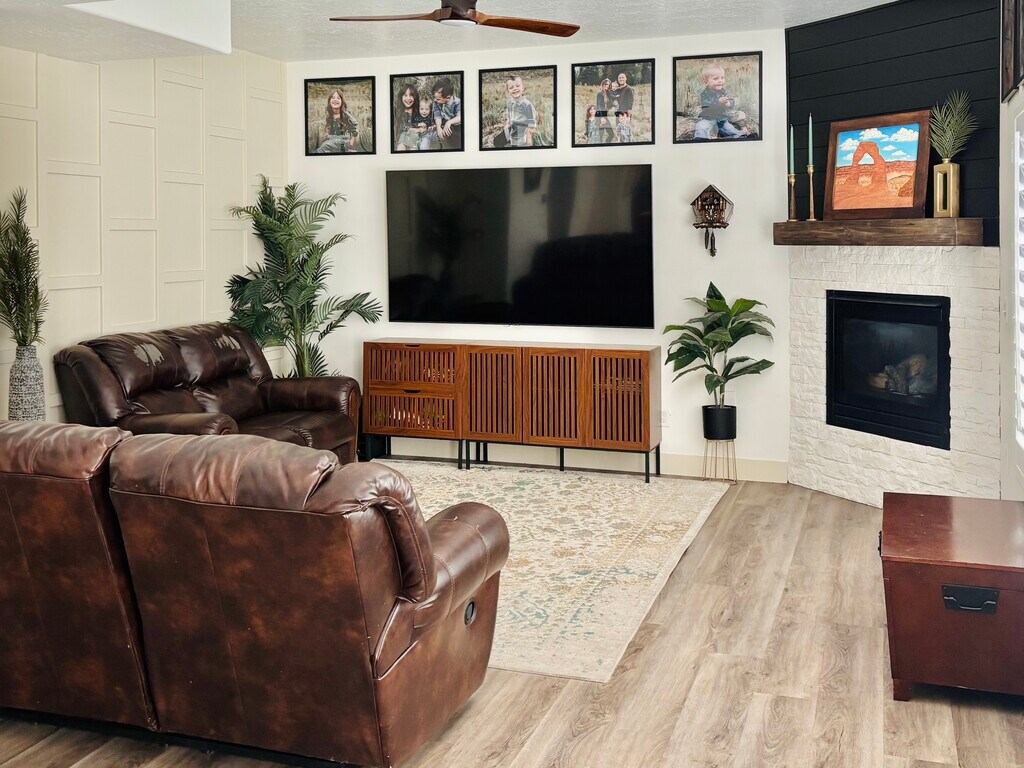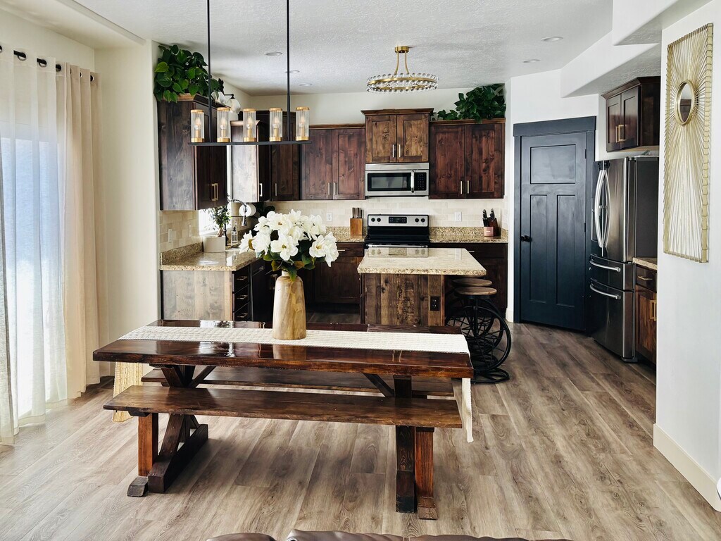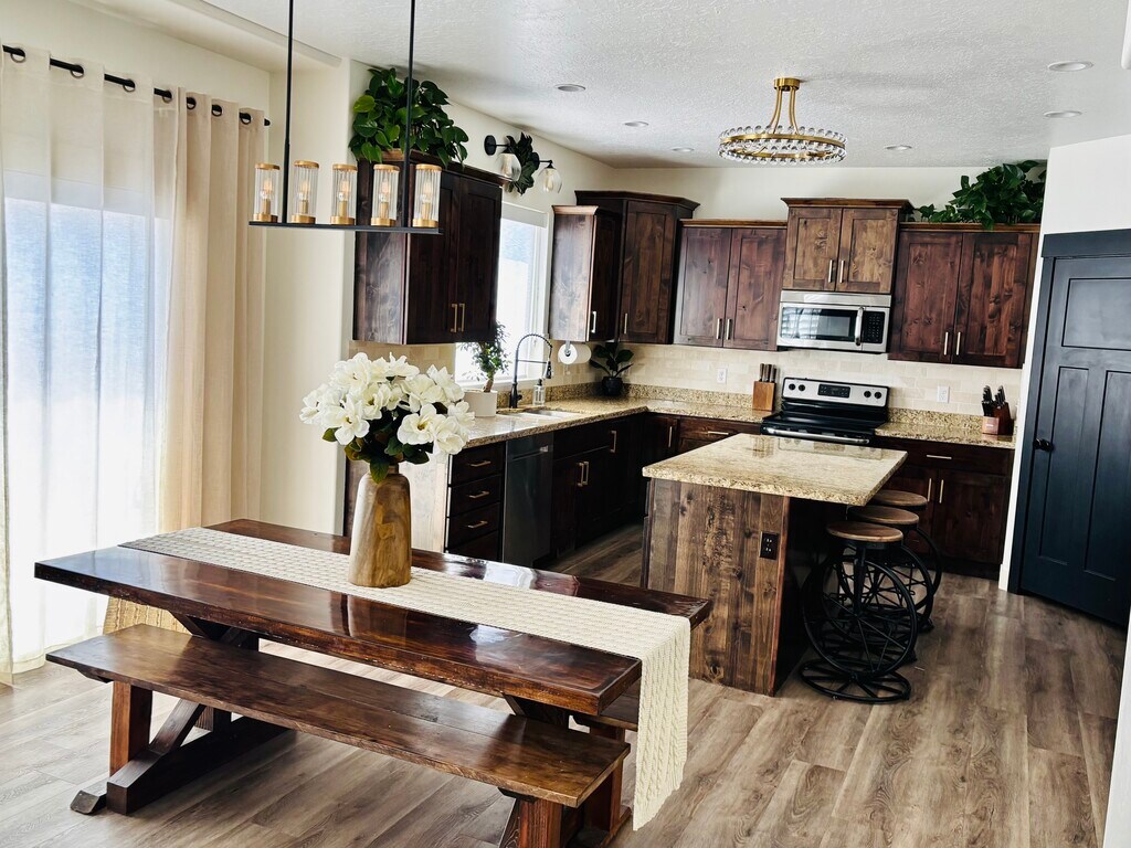Spacious 5-Bedroom Home with Steam Sauna, Lake Views & Modern Upgrades This isn’t just a rental—it has been our cherished primary home, cared for inside and out with love and attention to detail. Every update has been made with quality and comfort in mind, and now, for the first time ever, we’re opening it to you who will be the very first to enjoy it. Step inside and you’ll find 5 spacious bedrooms and 3.5 bathrooms, including a brand-new master bathroom SUITE designed for rest and relaxation. The fully finished basement offers a guest retreat with its own bedroom, a steam sauna built into the shower, and walkout access to the large, fully fenced backyard. Spacious basement to entertain friends and family. The front porch and patio are dreamy—offering million-dollar views of the lake where mornings start with peace and evenings end with magic. There's nothing like the 4th of July, watching fireworks POP and sparkle across the COUNTY. Inside, gather around the cozy gas fireplace, cook in the updated kitchen with a fresh backsplash, and appreciate thoughtful details like fandeliers in each bedroom, upgraded flooring and lighting, and fresh paint throughout. The holidays are easy with permanent, app-controlled Christmas lights. The home is also designed for function: a xeriscaped yard with a play area, an epoxy-coated garage with a large built-in workbench and cabinets, and a huge cold storage room. The property also features a large side yard, perfect for RV/BOAT PARKING. Adventure is your backyard with mountain biking and ATV/UTV trails, plus the Marina, just minutes away. To make life even easier, the home is equipped with smart automation features including app-controlled sprinklers and dual-zoned smart thermostats, giving you control over comfort and efficiency throughout every season and floor. All appliances are included (fridge, washer, and dryer)—making the home fully move-in ready. This is more than a place to rent. It’s a home that has been loved, cared for, and upgraded—now ready for new memories, new laughter, and new stories.