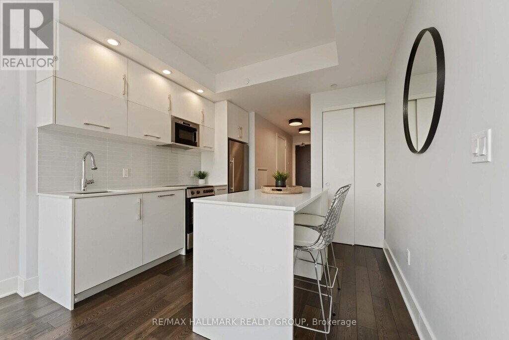 Stylish 2-Storey Loft in The Bowery 1 Bed + 1.5 Bathrooms - Parking & Locker Included! Welcome to The L1,a rare and stunning two-storey loft-style condo in The Bowery one of Centretown Ottawas most sought-after buildings. Perched on the 12th floor,this 1-bedroom,1.5-bath unit boasts dramatic 18-foot ceilings,massive windows,and dark hardwood floors throughout. This home features a convenient main-floor powder room,perfect for guests. The sleek kitchen offers two-tone cabinetry,white quartz countertops,stainless steel appliances,and a moveable island that doubles as a prep station and dining space for four. Upstairs,you'll find the primary suite with ensuite bath and in-unit laundry.Enjoy your morning coffee or evening wine on your private balcony elevated above the neighbouring building for enhanced views and privacy. INCLUDES PARKING AND A STORAGE UNIT,with secure underground bike storage available to all residents.Top-tier amenities on the buildings rooftop level include a fully-equipped gym,heated saltwater pool,sauna,party room (reservable),conference room,BBQs,and three patios with incredible views of downtown Ottawa.Just steps from the Lyon LRT Station,this unbeatable location puts you in the heart of the city with effortless access to transit,shops,restaurants,and more. (id:52069) ID#: 1981030