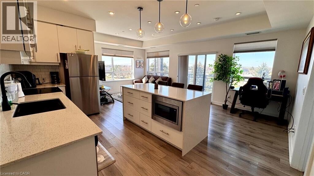Stylish and upgraded 2-bed,2-bath condo in one of Waterloo’s most desirable communities. Offering over 1,000 sq. ft. of well-designed living space plus a private balcony with breathtaking sunset views. Open-concept layout with a modern kitchen featuring quartz countertops,waterfall island,designer lighting,and sleek matte black fixtures,perfect for everyday living and entertaining. Bright living areas and spacious bedrooms,each with its own walk-in closet. Enjoy premium amenities including a fitness centre,rooftop terrace with BBQs and lounge areas,and a party room. Conveniently located near Hwy 7/8,Conestoga Mall,transit,RIM Park,Grey Silo Golf Course,and scenic trails. Includes underground parking and in-suite laundry. Option to lease furnished available at an additional cost - ideal for a turnkey living experience (id:63800) ID#: 2159314
