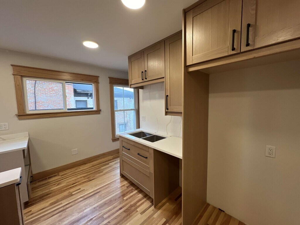 Check out this 4 bedroom 1 bathroom unit, everything has just been remodeled (new floors, new, paint, new light fixtures, new bathroom, new kitchen, new appliances, new doors, new windows). You would be the first person to live in this unit! Hardwood floors have been refinished throughout and the bathroom has been freshly tiled. Very close to downtown and 1 block from Midtown grocery store! Washer/dryer is in the shared basement where storage can be kept and access is easy. Off street parking is also available. Heat is forced hot air and specific to this unit, so you can set the temperature. Water, sewer, trash, lawn care, snow removal is included. Gas/electric & internet is not included. Call or inquire with any questions!