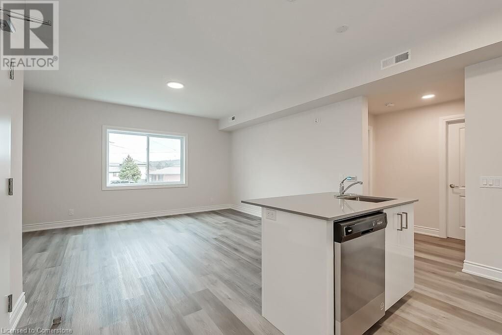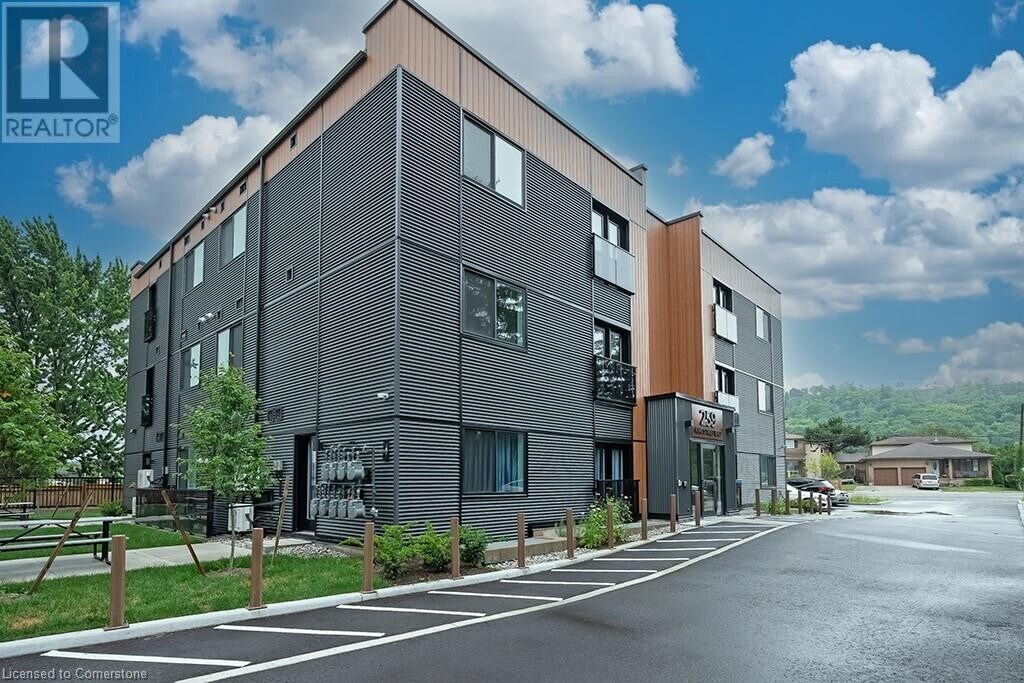 Be the first to live in this gorgeous 877 square foot open concept,2-bedroom 1 bath unit in Stoney Creek. Beautiful modern finishes include vinyl flooring,stainless steel appliances,quartz counter tops,high ceilings,and in suite laundry. The unit includes one parking space (#24) and the BBQ picnic area,bike storage and visitor parking all make this boutique condominium a great place to live. Close to downtown Stoney Creek and all it has to offer as well as parks,shopping,and transit,this unit is ready for you to call home. (id:52069) ID#: 1523757