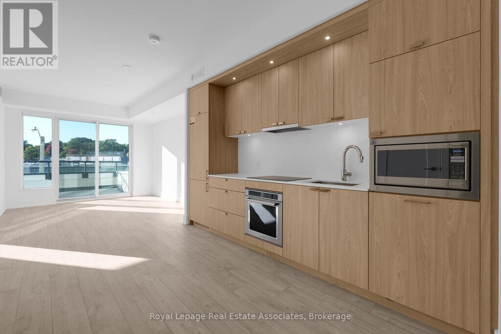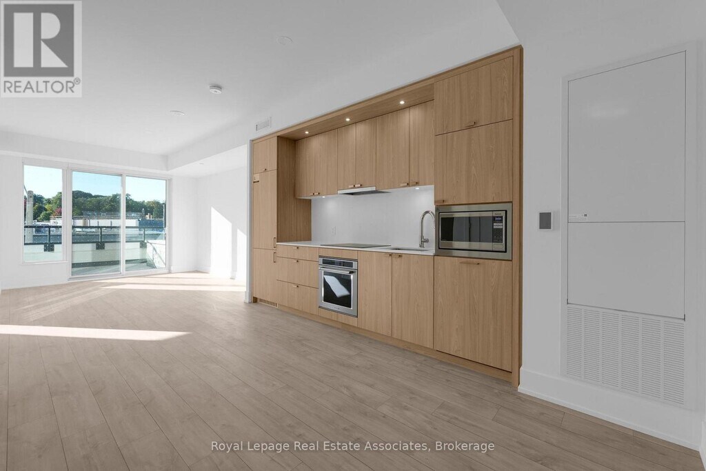 Welcome to Edenbridge by Tridel,where sophisticated design meets modern comfort in the heart of The Kingsway. This bright 1 + den suite offers 649 sq. ft. of thoughtfully designed living space featuring a warm,open-concept layout with wide-plank flooring throughout and floor-to-ceiling windows that flood the home with natural light. The sleek kitchen is beautifully finished with integrated stainless-steel appliances,quartz countertops,and flat-panel wood cabinetry,seamlessly opening to the living and dining area with a walk-out to a spacious private terrace,perfect for outdoor dining or relaxing. The primary bedroom also offers direct access to the terrace,while the versatile den provides the ideal space for a home office or guest nook. The spa-inspired 4-piece bathroom features modern porcelain tile,a backlit mirror,and elegant finishes. In-suite laundry adds convenience to this stylish home. Residents enjoy access to an impressive collection of amenities including a state-of-the-art fitness centre,indoor pool,yoga studio,rooftop terrace,party room,and 24-hour concierge. Ideally situated steps from Humbertown Shopping Centre,top schools,parks,and transit,this residence offers the perfect blend of upscale living and convenience in one of Etobicoke's most desirable neighbourhoods. (id:52069) ID#: 1968379