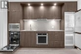 Welcome to Edenbridge by Tridel,where sophisticated design meets modern comfort in the heart of The Kingsway. This bright and functional 1 bedroom + den,1.5 bathroom suite offers 655 sq. ft. of thoughtfully designed living space with elegant finishes throughout. The contemporary kitchen features full-height wood-grain cabinetry,quartz countertops,integrated stainless-steel appliances,a built-in wall oven,sleek cooktop,under-cabinet lighting,and ample storage - combining everyday practicality with a refined aesthetic. The open living and dining area is enhanced by wide-plank flooring,clean modern lines,and expansive windows that fill the home with natural light. A seamless walk-out leads to the private balcony,offering views overlooking the surrounding tree-lined neighbourhood. The spacious bedroom features large windows,a generous closet,and easy access to the private ensuite,finished with polished porcelain tile,a modern vanity,and a deep tub/shower enclosure. The versatile den is ideal for a home office or quiet workspace. A convenient powder room off the main living area adds everyday flexibility,while the full-size stacked Whirlpool washer and dryer provide in-suite convenience. One parking space is included. Residents enjoy access to a premium collection of amenities including a fitness centre,indoor pool,sauna,yoga studio,rooftop terrace,party and dining rooms,and 24-hour concierge service. Ideally located steps from Humbertown Shopping Centre,transit,parks,and top-rated schools - with quick access to downtown Toronto and Pearson Airport - this suite offers upscale living in one of Etobicoke's most desirable communities. (id:52069) ID#: 1968379