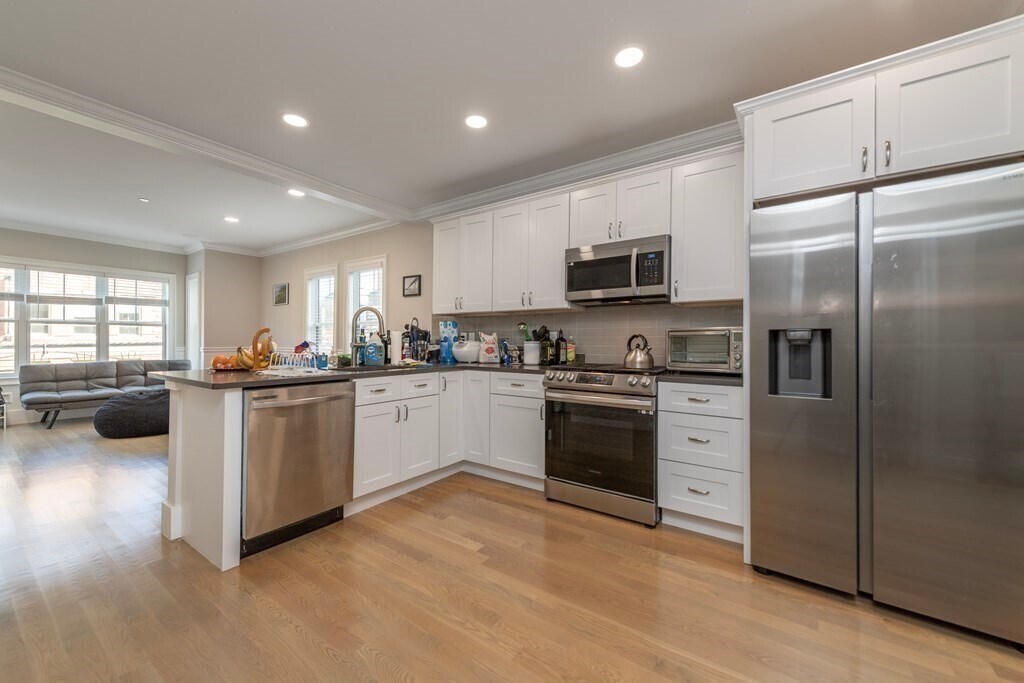 2023 new construction. Unit 1 is at the first floor which has spacious 3 bedrooms and 2 full bathrooms. Hardwood floors, crown moldings + chair railings, shaker kitchens w/solid surface countertops + gas cooking. The bedrooms are all spacious and have ample closets, and there are two bathrooms, each with fashionable tile selections. In unit laundry. a clean storage basement, HVAC w/AC + superior life safety with a sprinkler and fire alarm system round this one out. Offer parking spaces and a patio. Very desirable Brighton location.
