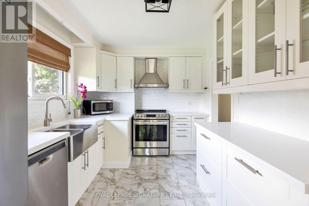 26 Paragon Road is situated in the highly desirable Kingsview Village,minutes to the 427 &401,as well as the Etobicoke North Go station,but tucked away on a quiet,family friendly street surrounded by beautiful,mature trees. The Main Floor begins at the spacious foyer (with ample closet storage) that welcomes you into the open concept living/dining room with hardwood floors and large south facing windows. The main floor also features a newly renovated modern kitchen with quartz counters,custom backsplash,stove/oven,dishwasher and microwave. 3Generously sized bedrooms,all with large windows,hardwood floors,and ample closet space. The main floor features its own en-suite stacked laundry,as well as front porch sitting area and exclusive use of the massive backyard. Modern vanity and shower/tub in the washroom. Exclusive use of the garage and 2 parking spots- garage and carport. Utilities extra - Main floor pays60% of all utilities (Hydro,water,Gas). (id:52069) ID#: 2200157