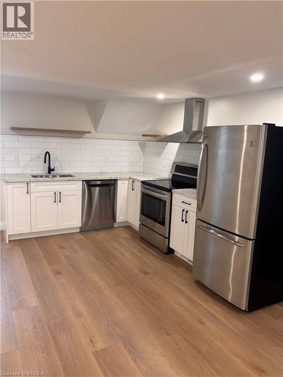 Not ready to Buy? Welcome to this beautifully fully remodeled basement apartment,ideally suited for young professionals,commuters,and downsizers seeking stylish,low-maintenance living in Brantford’s highly desirable north end. Offering approximately 800 square feet of thoughtfully designed space,this one-bedroom,one-bathroom unit showcases modern finishes and a functional layout throughout. Step inside to a bright and inviting living area,complete with rich vinyl-plank flooring,recessed lighting,and a contemporary fireplace with a striking stacked stone surround—creating the perfect space to relax or entertain. The updated kitchen is both stylish and practical,featuring sleek white shaker-style cabinetry with black hardware,a classic subway tile backsplash,and stainless steel appliances. The spacious bedroom provides a comfortable retreat,while the beautifully appointed bathroom offers a spa-like feel with a glass-enclosed shower,subway tile surround,and eye-catching mosaic accents. This unit includes convenient driveway parking,in-suite laundry,and all utilities are included in the monthly rent offering exceptional value and ease of living. Please note,the backyard is not included with this rental. Located close to all amenities,schools,and with quick access to Highway 403,this is an ideal home for those seeking comfort,convenience,and modern design in a prime location. (id:63800) ID#: 2131491