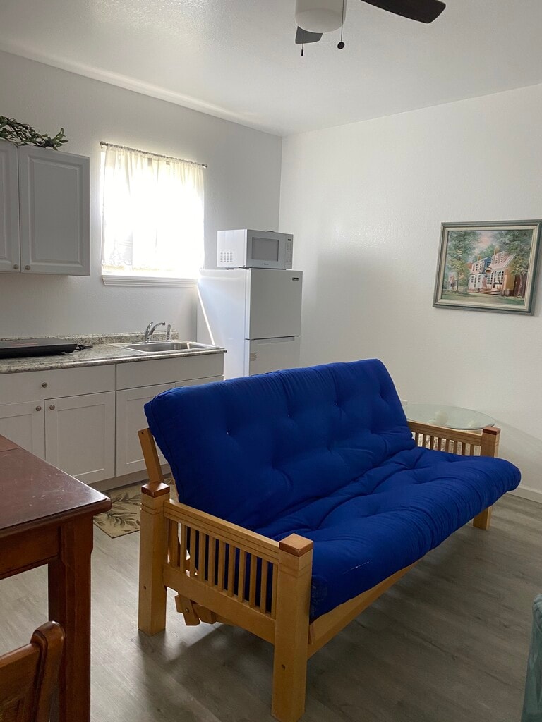 This is a duplex with 3 units on each side, Garden in the Center. These photo's are L&R 3 All utilities are within the pricing. L&R 3 is large one room with futon, table and chairs, recliner, kitchenette (ref. cooktop, microwave) full bathroom (shower, commode, and small vanity) It has a bedroom with King mattress available for 2 person. L&R 2 is large living room/kitchette/bedroom combined, furnished, with walkin closet and full bath. Available for 1 person L&R1 is Large Living/ kitchen, bedroom, bath, and walk in closet. See all on homeandlandtransformers.com with video.