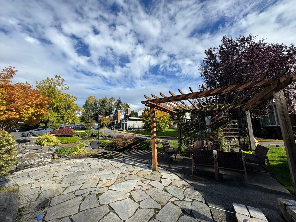 Saybrook Condominiums. Private ground floor/corner unit this open 1 bedroom and 1 bath. This unique condo has a patio which faces the community atrium area complete with a pond and lounging area w/ fire pit. Bright open concept living room leads into the kitchen. Kitchen boasts Slab Granite counter tops, maple cabinetry, pantry, & Stainless Steel appliances. In-unit washer & dryer. Large windows in walled off bedroom provide a bright sunny space. Refundable Security equal to one month's rent and first month's rent required to move in. Small dog accepted breed restrictions may apply. Utilities included: water, sewer and garbage! One reserved parking space included! Great location near I-5, Hwy 99, Park & Ride & NEW light rail station coming in 2026 across the street! Just use the crosswalk and ride the light rail to work once it opens next year. It's also near I-5, Redondo Beach, and a fantastic community dog park. Easy access to downtown Seattle. $40 application fee per adult. Available now!
