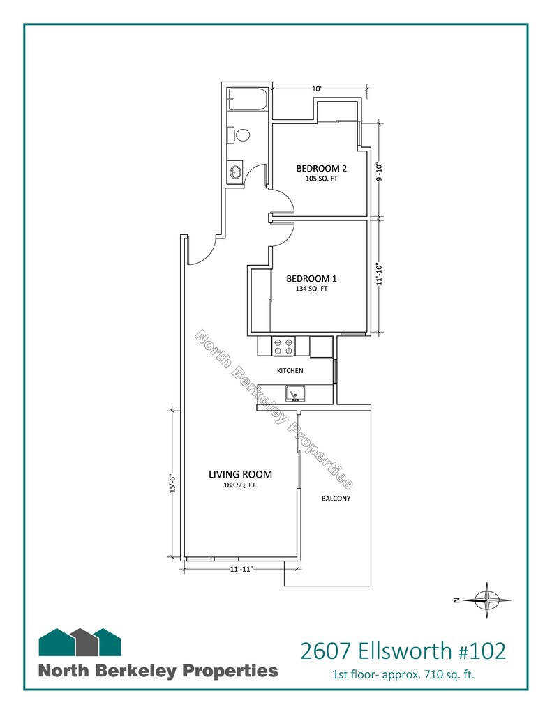 2 Beds, 1 Bath, 710 sq ftAvailability Details