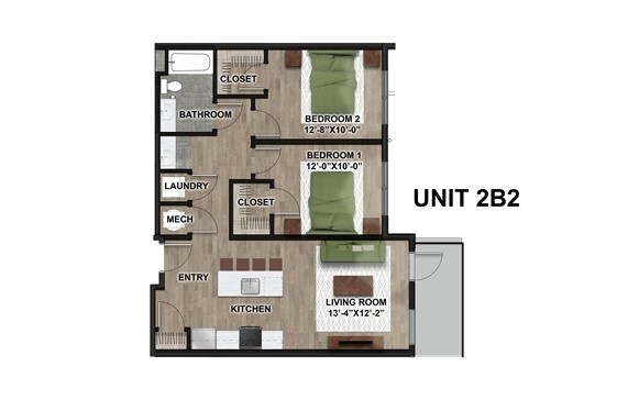 2 Bedroom Model B - Floorplan 1 2 Bedroom Model C