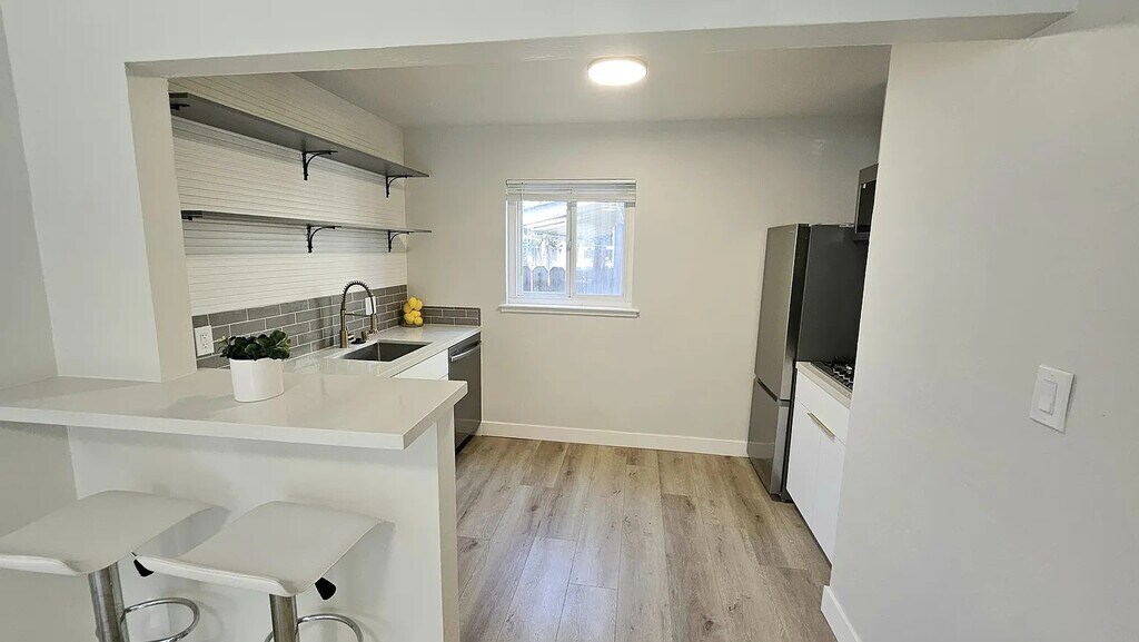 Welcome to North 6th St - a thoughtfully updated rental in the heart of San Jose, just minutes from Japantown, SJSU, and downtown tech hubs. Enjoy living in this newly renovated home with the best dining and shopping experiences that San Jose has to offer, just a few minutes away. Experience the vibrance of San Jose life by walking to Market Center, Historic San Pedro Square, Japantown and more. This apartment complex is student-friendly, being just a twelve minutes' walk to San Jose State University. Easy access to 101, 87 and VTA. Amenities included are on-site laundry, assigned parking, and gated community living. Inside You'll Love: - Newly renovated kitchen with quartz countertops, designer open shelving, and sleek brass hardware - Stainless steel appliances and deep sink with pull-down faucet - Light-filled open floor plan with wood-style flooring -New tiled bathroom and new vanity - Double pane windows - Ceiling fan and portable AC - Keyless entry Contact now for a brand new one-bedroom apartment that feels like home, convenience, and luxury. Owner pays for water, sewer and garbage fees. Tenant pays for gas and electricity. 6,9 or 12 months lease term