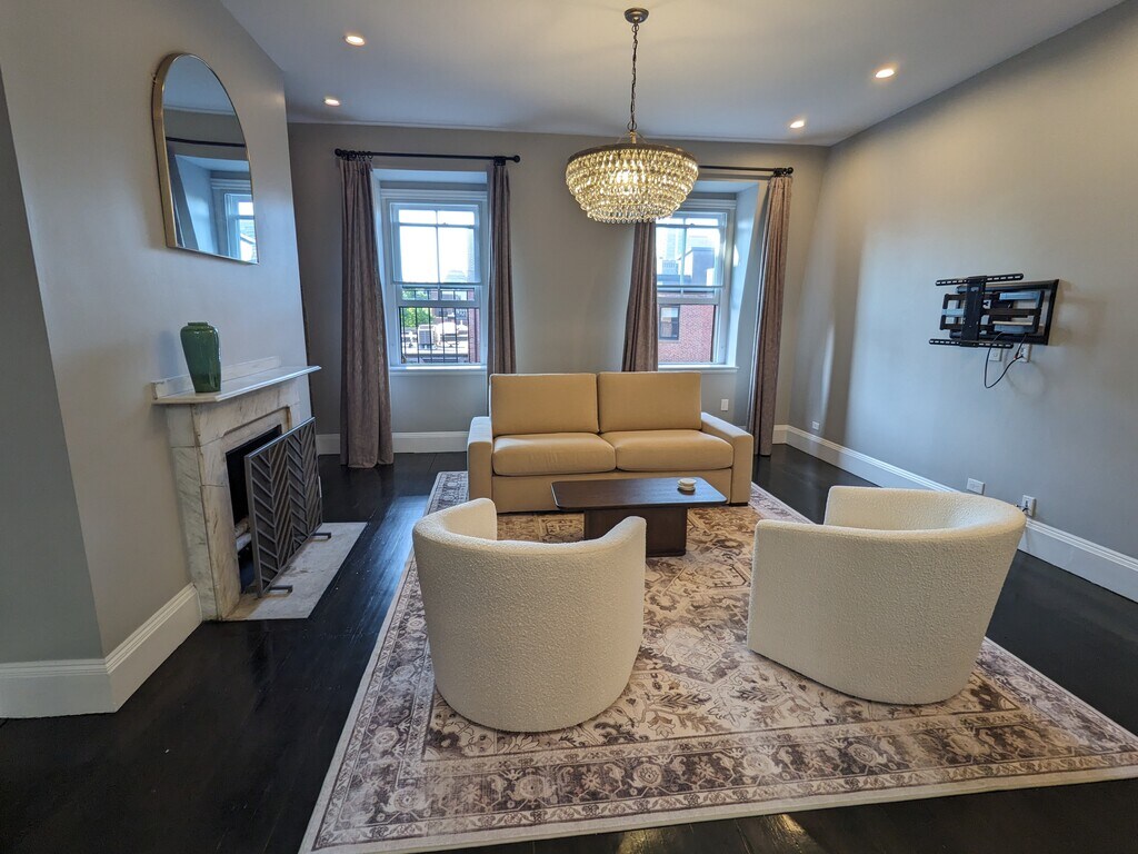Experience your best life in Back Bay with this floor thru FULLY FURNISHED front facing penthouse that features: - Welcoming entry foyer w/ closet space! - Hardwood flooring shining throughout! - High end, fully equipped kitchen! - Stainless appliances inc dishwasher! - Quartz countertops & breakfast bar! - Open concept floorplan w/ 10 foot ceilings! - Skylights drenching living room in sunlight! - Charming decorative marble fireplace! - 2 generously sized equal bedrooms! - Large closets & ample storage space! - Luxuriously updated marble full bathroom! - Convenient in unit washer & dryer! - Central heating & air conditioning! - Classic wrought iron spiral staircase! - Expansive private roof deck w/ amazing views! Renovated in 2020 with no expense spared & No detail overlooked mixing traditional Back Bay Brownstone elements w/ the best of the best of today & FULLY FURNISHED w/ brand new pieces from Restoration Hardware - this unit is truly a one of a kind opportunity to live large in the tony Back Bay! Prime location surrounded by luxury new builds & classic Brownstones in the heart of Back Bay on sought after, historic, tree lined Beacon Street! Close to Newbury Street, Commonwealth Ave Mall, Kenmore Square, Boston Common, Suffolk University, Prudential Center, Copley Square, Restaurant Row, Boston Public Library, Public Gardens, Emerson College, Symphony Hall, Hynes Convention Center, and much more! Anything not in short distance can be easily accessed by the close by public transportation: Green and Orange train lines nearby, as well as Silver Line shuttle, many major MBTA bus routes, and Commuter Rail at Back Bay Station!