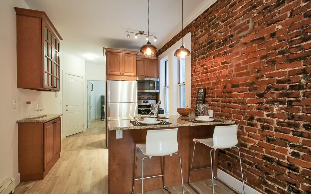 This stylish one-bedroom plus den apartment located on the 3th floor, features elegant industrial finishes throughout. Highlights include charming exposed brick walls, hardwood floors, and an updated kitchen with granite countertops, a mosaic backsplash, and stainless steel appliances. Perfect for commuters, it's just 3 blocks from the 8th Street Light Rail and minutes from downtown Jersey City, Exchange Place, Grove Street Path, Hoboken Path, Journal Square, and Manhattan. Located on Broadway, it provides easy access to restaurants, shops, and transportation. The tenant will pay for gas, electricity, heat, and 8.33% of the water/sewer bill. Smoking is not permitted. The apartment will be showed for prequalified applicants only with a credit score of 680+ and gross income per month 3X rent. To prequalify, please email the following information: number of occupants, employer name, total annual income, credit score, email, and phone number. Additional information may be requested as needed.