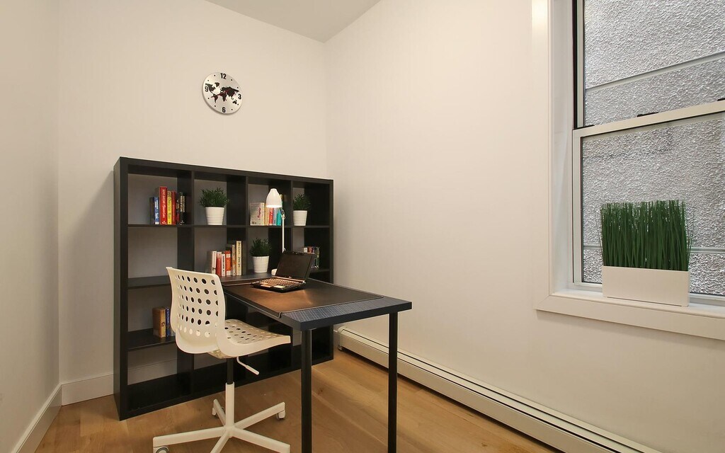 This stylish one-bedroom plus den apartment located on the 3th floor, features elegant industrial finishes throughout. Highlights include charming exposed brick walls, hardwood floors, and an updated kitchen with granite countertops, a mosaic backsplash, and stainless steel appliances. Perfect for commuters, it's just 3 blocks from the 8th Street Light Rail and minutes from downtown Jersey City, Exchange Place, Grove Street Path, Hoboken Path, Journal