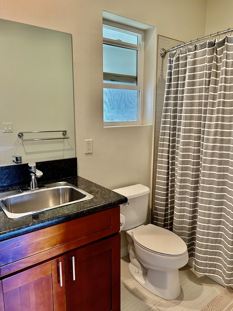 Beautiful queen, quiet private studio unit 10 foot ceiling full bath with bathtub no kitchen there is a midsize nice refrigerator with freezer kitchen hutch table with toaster and hot plate, silverware and dishes, coffee pot, etc. Murphy bed sofa, big walk-in closet Private lanai with furniture, room for a barbecue with sliding door. Beautiful manicured, yard mango trees, spacious.