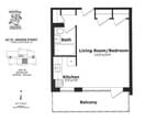 bachelor 1 bathroom with a balcony - Floorplan 2 Apartment Unit: 0905Apartment Model: bachelor 1 bathroom with a balcony$1,697Studio, 1 Bath, 340 sq ftAvailable April 1, 20261 Bedroom