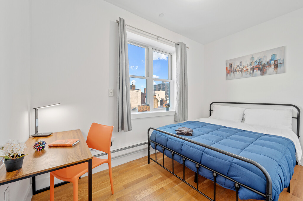 Lorimer St, Williamsburg, Brooklyn – Private Room Just steps from the Broadway and Lorimer subway stations, in the heart of Williamsburg If you’re looking for a private, fully furnished bedroom in a clean, social apartment, this might be what you need. This is a private room in a shared apartment. You'll have your own space to rest and recharge, while sharing the kitchen, bathroom, and living room with mixed-gender housemates. The building is calm and well-connected, and the room comes fully furnished with a bed, desk, linens, closet space, and a personal safe. The kitchen is stocked with cookware and household essentials, and shared spaces are cleaned weekly by our staff. You just take care of your own room. All-inclusive rent covers utilities, WiFi, cleaning of shared areas, and basic supplies. If you need help with approval or the deposit, we offer flexible options. Most people just need one month down. What to know: Private bedroom in a shared apartment Shared bathroom and kitchen with mixed-gender roommates Verification required (ID, selfie, income and bank proof) 12-month lease offers the best price. Shorter stays are available at a slightly higher rate Let us know what you're looking for, and if it’s a fit, we’ll walk you through the next step. Amenities include: furnished room, professional cleaning of shared areas, complimentary coffee and toiletries, flexible lease terms, same-gender room sharing, mixed-gender apartment options, fully equipped kitchen, modern appliances, flexible deposit solutions, verification support, subway station proximity, neighborhood dining and nightlife access.