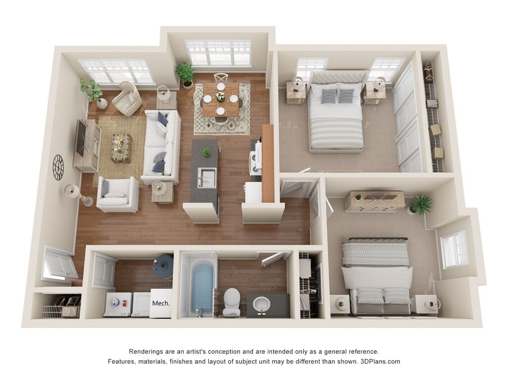 2 Beds, 2 Baths, 977 sq ftAvailable NowLargest 2 BedroomThis is the largest 2 Bedroom at this PropertyModel Gallery