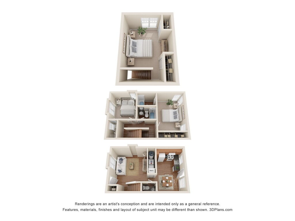 3 Beds, 2.5 Baths, 1233 sq ftModel Gallery