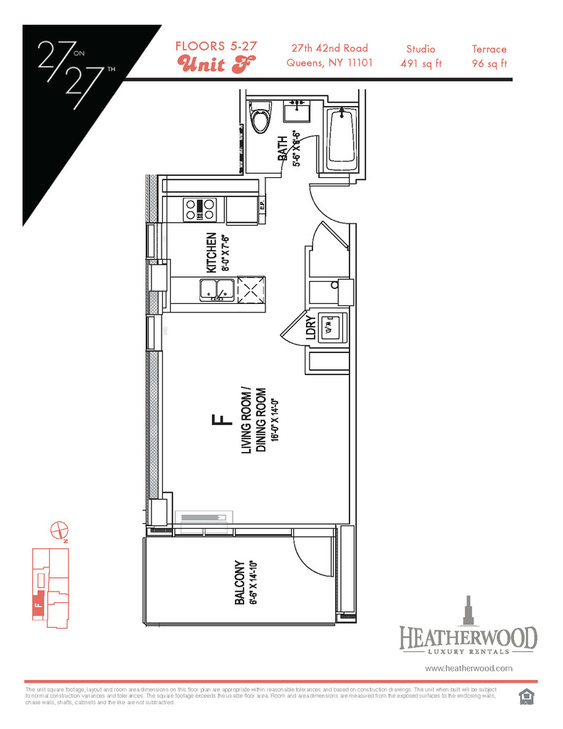 Apartment Model: Studio - F Line with TerraceStudio, 1 Bath, 491 sq ftAvailable Now![]()