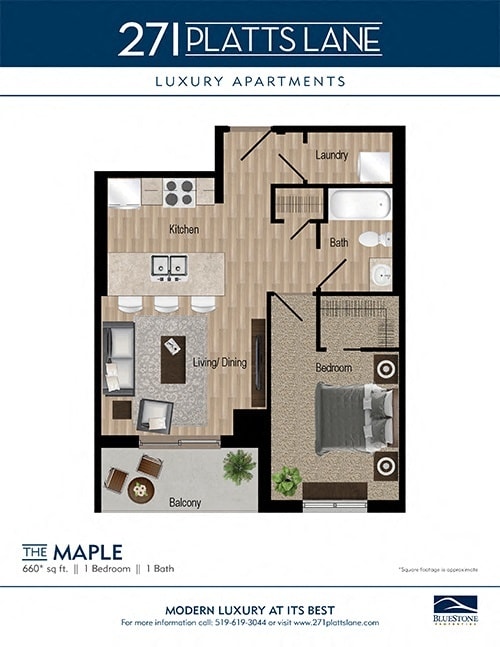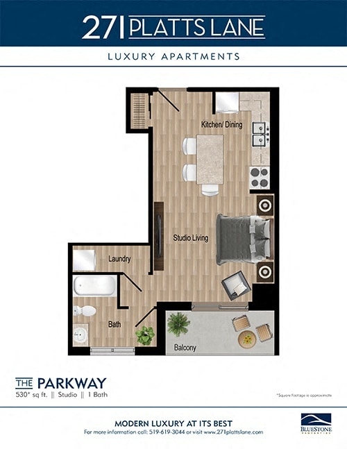 271 Platts Lane offers Studio to 2 Bedroom apartments starting from C$1,599 and having 475–1,390 sq ft. Here is the current pricing and availability: