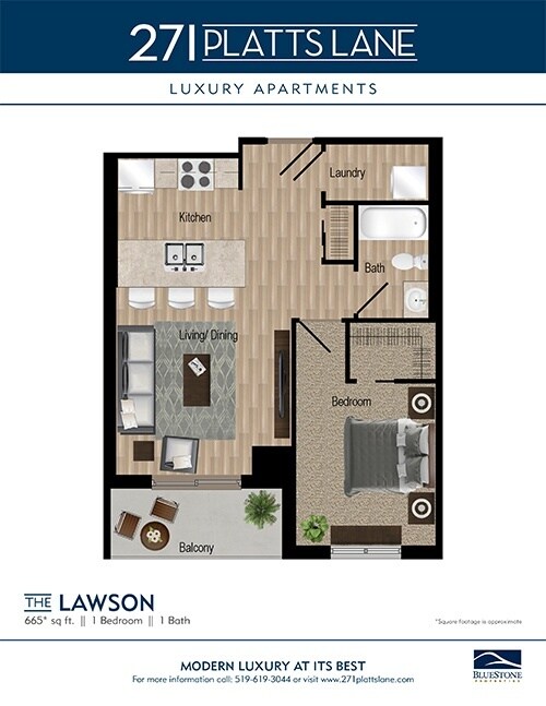 Apartment Model: The LawsonCall For Rates1 Bedroom, 1 Bath, 665 sq ftUnavailableThe Lawson - Floorplan 1 The Waterloo