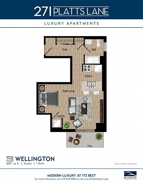 Studio to 2 Bedroom Apartments at 271 Platts Lane currently range from C$1,599 to C$2,399