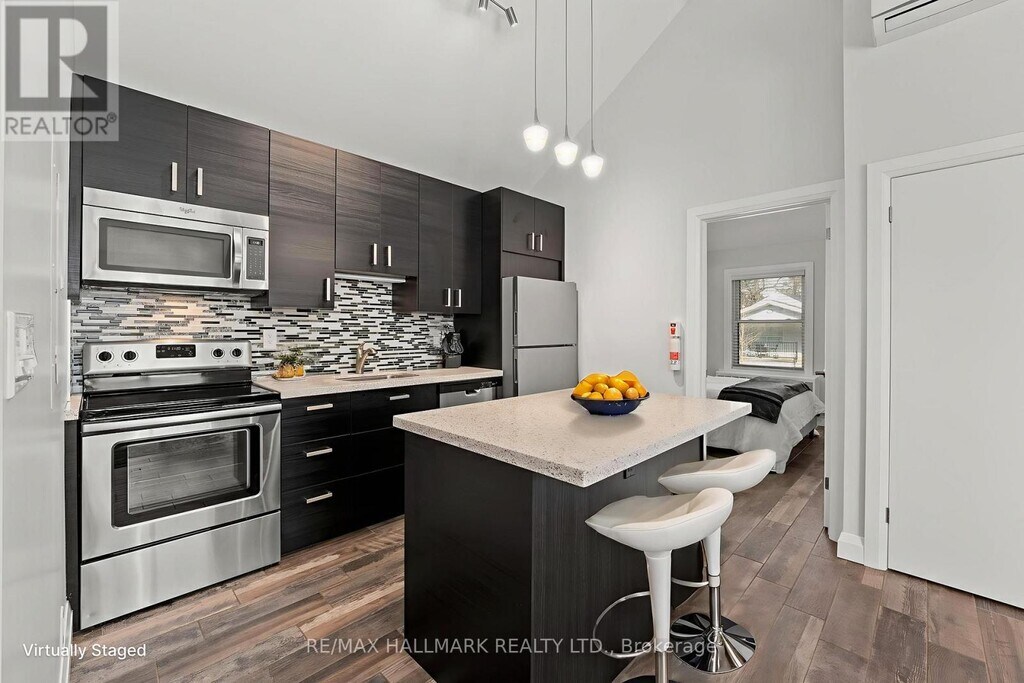 Fantastic renovated 2 bedroom,1 bathroom suite in a beautifully updated detached house with lots of natural light. 4 piece bath. Separate entrance. Open concept kitchen with stainless steel appliances. High vaulted ceilings. Air Conditioning. Own washer & dryer. Located near the Danforth and everything it has to offer,including great restaurants and shops! Conveniently located near TTC. One parking spot is on the street as free street parking is available. (id:52069) ID#: 1479829