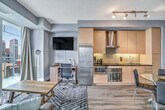 Experience the vibrant heart of Downtown Toronto with this modern 1-bedroom suite located at 300 Front St W. Situated on a high floor, this apartment offers a balcony with stunning city and lake views, making it the perfect urban retreat. Feel at home with a separate bedroom featuring a queen bed and a walk-in closet. The apartment boasts a fully equipped kitchen, ideal for preparing your favorite meals, and an in-unit laundry for your convenience. Relax in the living area with a 50" Smart TV, or take advantage of the workspace complete with a desk and chair. High-speed 2 Gbps fibre internet ensures seamless connectivity for all your needs. Residents can enjoy access to a well equipped gym and a rooftop pool, perfect for unwinding after a busy day. Nestled in a prime location, this apartment provides easy access to Toronto's bustling downtown attractions. Enjoy the convenience of having a Starbucks and South Street Burger on-site, and explore the city's vibrant culture and entertainment options just steps away. This property requires a minimum stay of 30 nights. A laptop computer is not included. The apartment includes a dedicated workspace with a desk and chair, complemented by high-speed 2 Gbps fibre internet, making it ideal for remote work.
