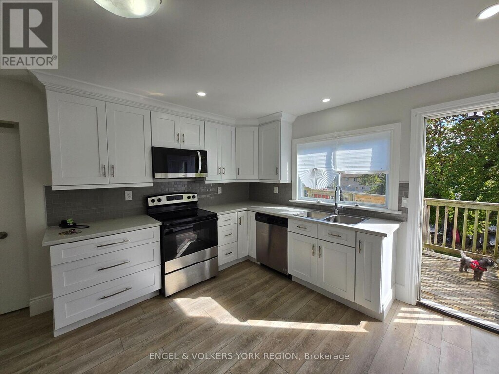 Gorgeous 2bedroom main flr and half basement in great location! Steps from Lake Simcoe - NoFrills grocery store and Timmys within walking distance-Public transit at door-Close to RVH Hwy 400 for commuters Modern main flr apt in triplex-Upgraded finishes-Beautiful yard and private deck off kitchen Wood flooring throughout (NO carpet) Neutral paint throughout Walk into inviting foyer with closet Large Living Rm with enough room for dining-Huge Bow window 2 Queen size bedrooms with dbl closets and dbl windows-Lots of Light Hallway office Nook&Bathroom with tub & window Eat in Kitchen with SS appliances including DW and built in microwave-Plenty of cupboards with pull outs Walkout from kitchen to large deck overlooking peaceful backyard-steps to yard Half basement has washer & dryer and storage 2 Parking spotsCentral Air Conditioing Shared Yard Private Patio & deck Separate Hydro Meters-Tenants to register in their own names prior to occupancy (id:52069) ID#: 1525587