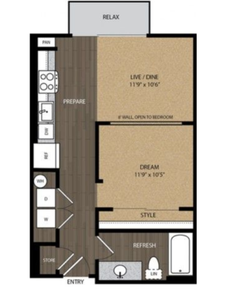 Studio, 1 Bath, 600 sq ftAvailable NowModel Gallery