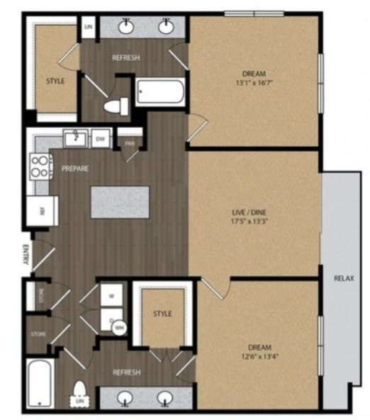Apartment Model: E2From $1,224Studio, 1 Bath, 600 sq ftAvailable Now![]()
