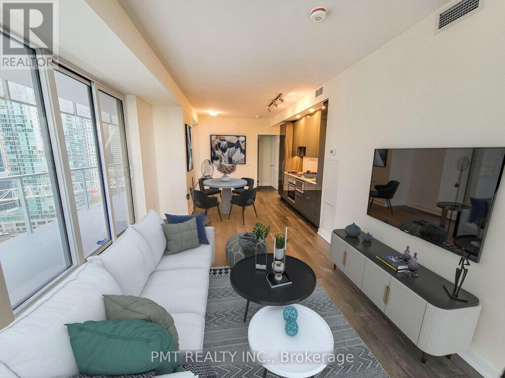 Welcome to this spacious 881-square-foot corner suite located in the heart of downtown Toronto. Perfectly positioned just steps from the PATH,Loblaws,the Financial District,and with easy access to major highways,this residence offers the ideal balance of comfort,convenience,and connectivity. Enjoy stunning views of the city skyline and waterfront from your wrap-around terrace,accessed through the open-concept living and dining area. The sleek,modern kitchen is outfitted with stainless steel appliances and ample cabinetry,creating a perfect space for both everyday cooking and entertaining. The expansive primary bedroom features a walk-in closet and a private 4-piece ensuite for added comfort. The second bedroom includes generous closet space and is ideal as a guest room,home office,or shared living. A second 3-piece bathroom and additional hallway closet provide extra convenience. Residents enjoy access to abundant amenities,including a 24-hour concierge,gym,yoga studio,party room,private dining room,boardrooms,and a business/study centre on the third floor. The fourth floor offers an outdoor running track,dog run,and lounge areas. On the seventh floor,enjoy lawn bowling,a landscaped terrace with BBQs,and outdoor dining areas. *Please note that the photos have been virtually staged. (id:52069) ID#: 2161053